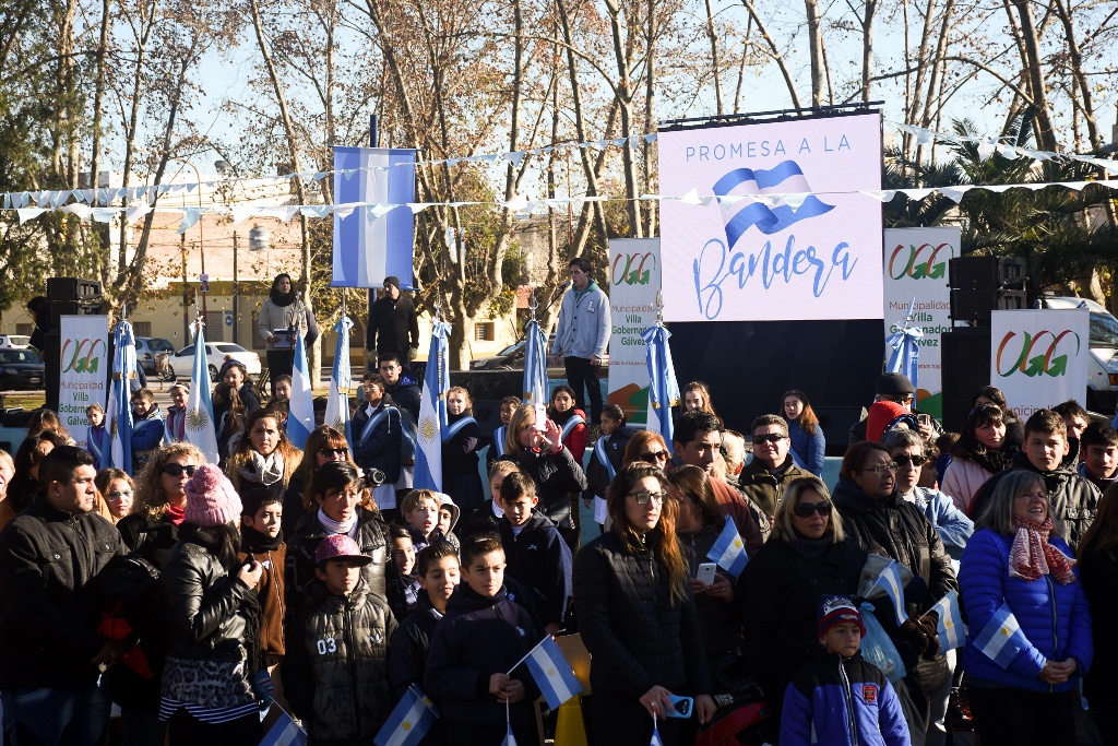 El intendente Alberto Ricci presidió el acto por el Día de la Bandera en Villa Gobernador Gálvez. En un marco de emoción y alegría los alumnos de 4to grado dijeron “Sí, Prometo” y sellaron su compromiso de lealtad a la insignia Patria.