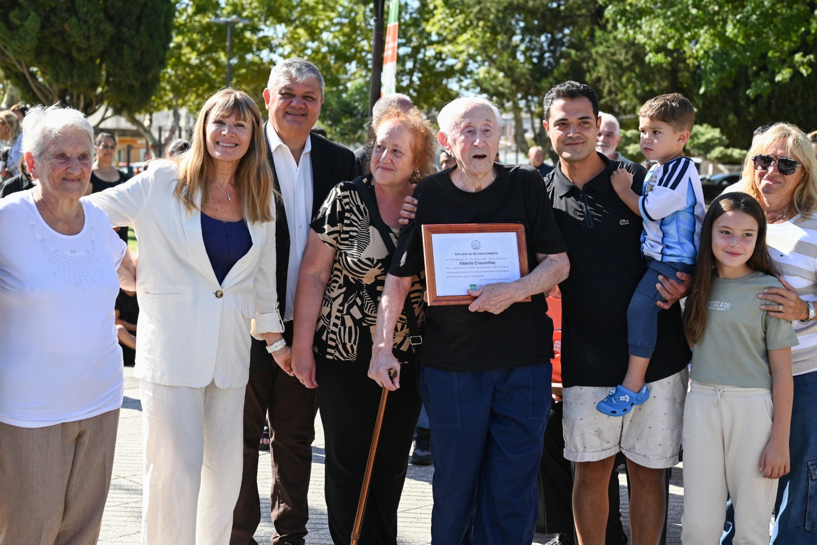 En esta oportunidad, fueron reconocidos María Adela Soto, Juan Casco y Alberto Crouzeilles. Y en ese sentido, Casco valoró: “Para mí Villa Gobernador Gálvez es todo: nací, me crie, me casé, tengo mis hijos, mis nietos, bisnietos. Todos acá. Es mi ciudad, lo más grande que hay. Que me hayan reconocido es un orgullo, ya haber nacido y crecido acá es todo, y encima este reconocimiento es una alegría inmensa”.
