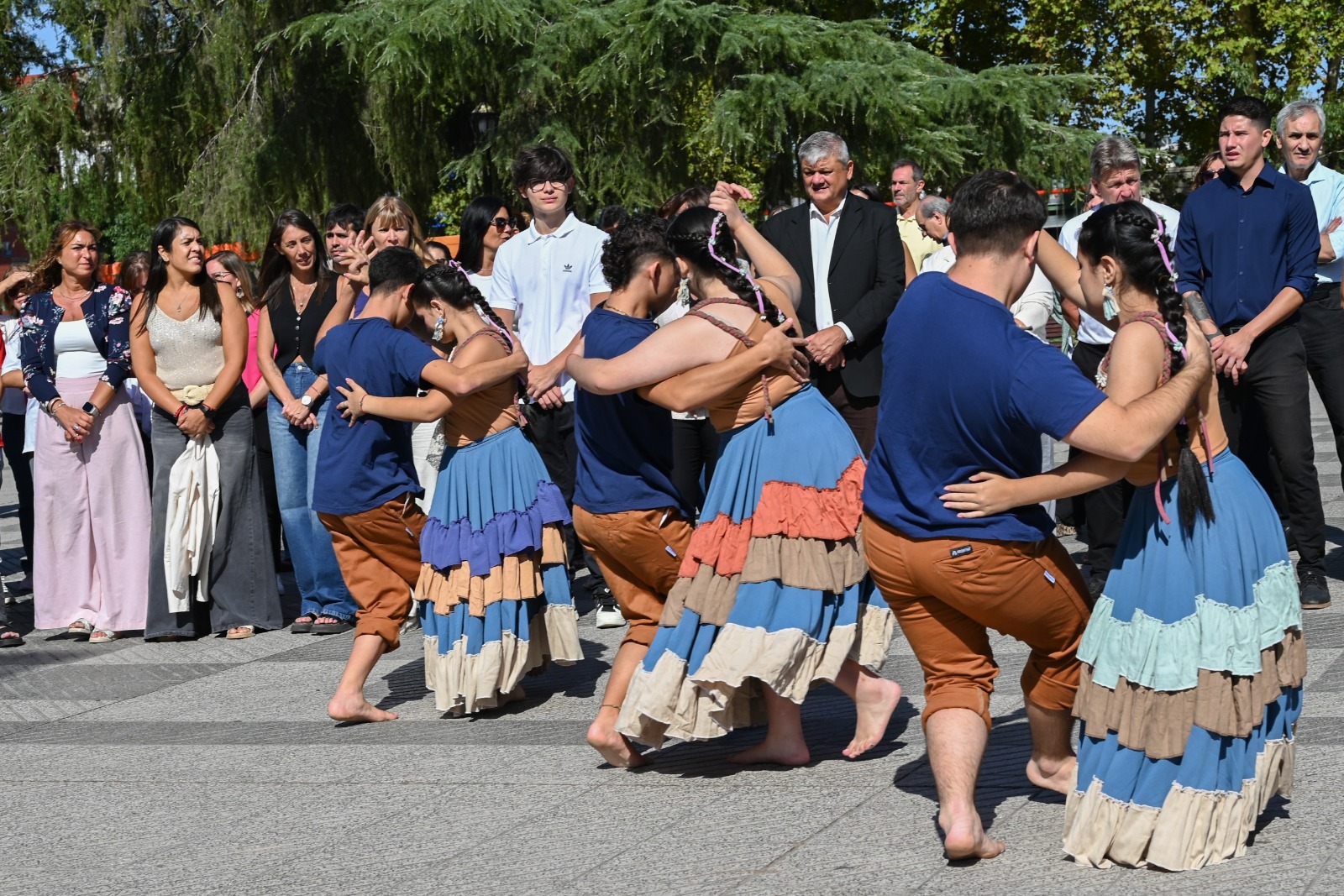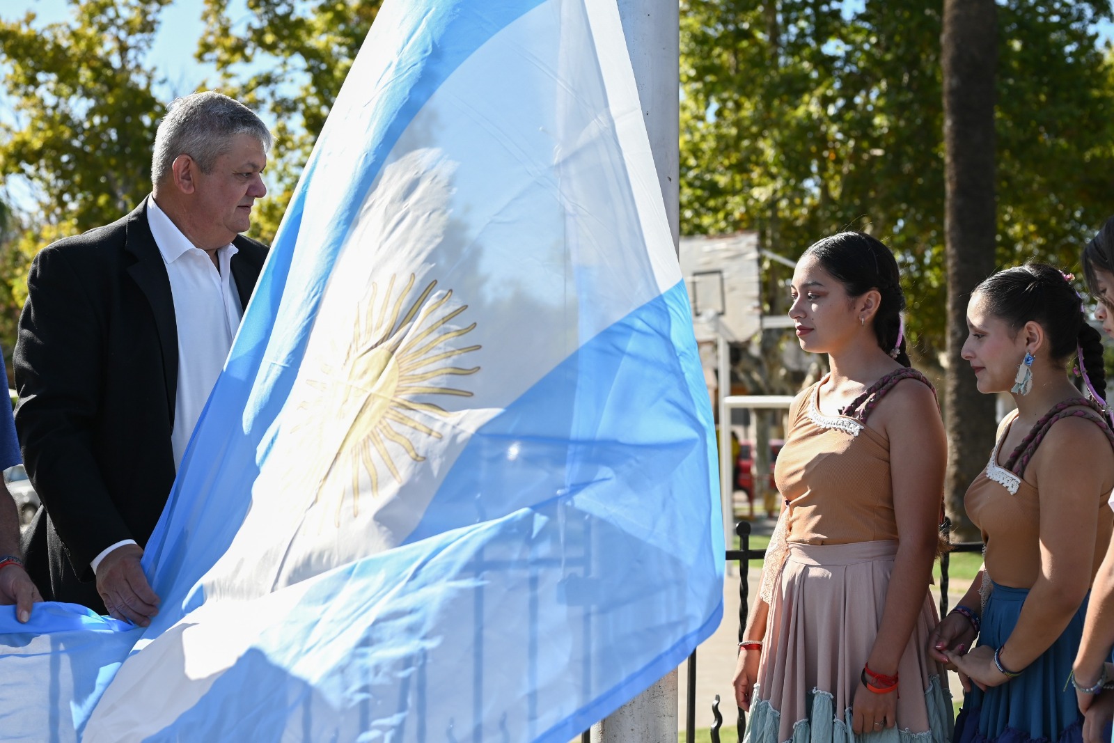El evento tuvo cita en la plaza San Martín –ubicada en Mitre y Oppici– y contó con la presencia de autoridades locales, provinciales, soldados excombatientes de Malvinas, abanderados de escuelas, de los Bomberos Voluntarios, el taller de Lengua de Señas Municipal, los ballets Municipal y de Cuyo al Litoral que ofrecieron un número artístico, la distinción a ciudadanos honoríficos que hace más de 70 años en la ciudad, vecinos y vecinas.