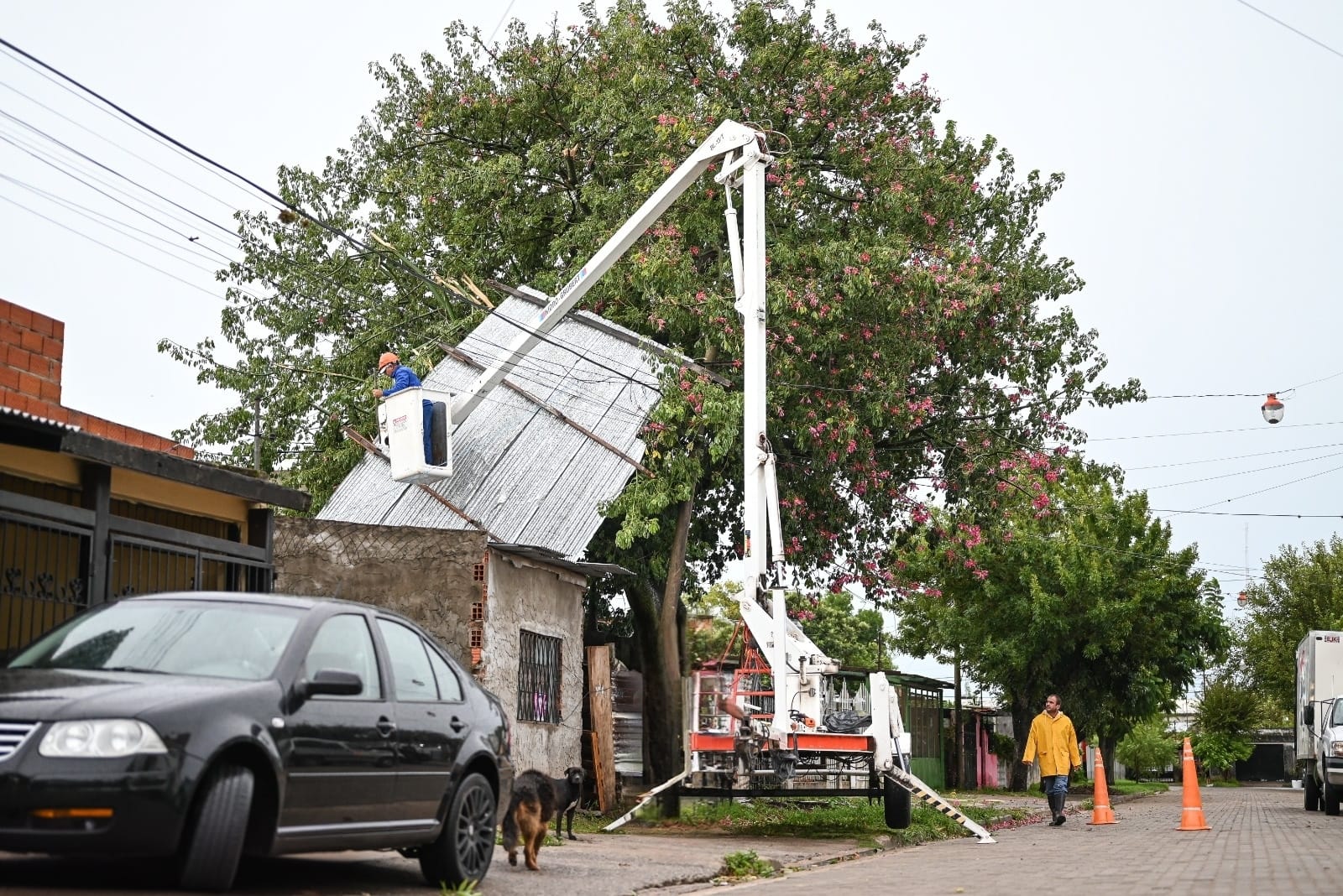 Árboles caídos: 4 situaciones en Marcos Paz y Mitre; Alberdi al 3000; Cafferata al 2700; Bécquer al 2200, este caso el árbol cayó sobre un auto.