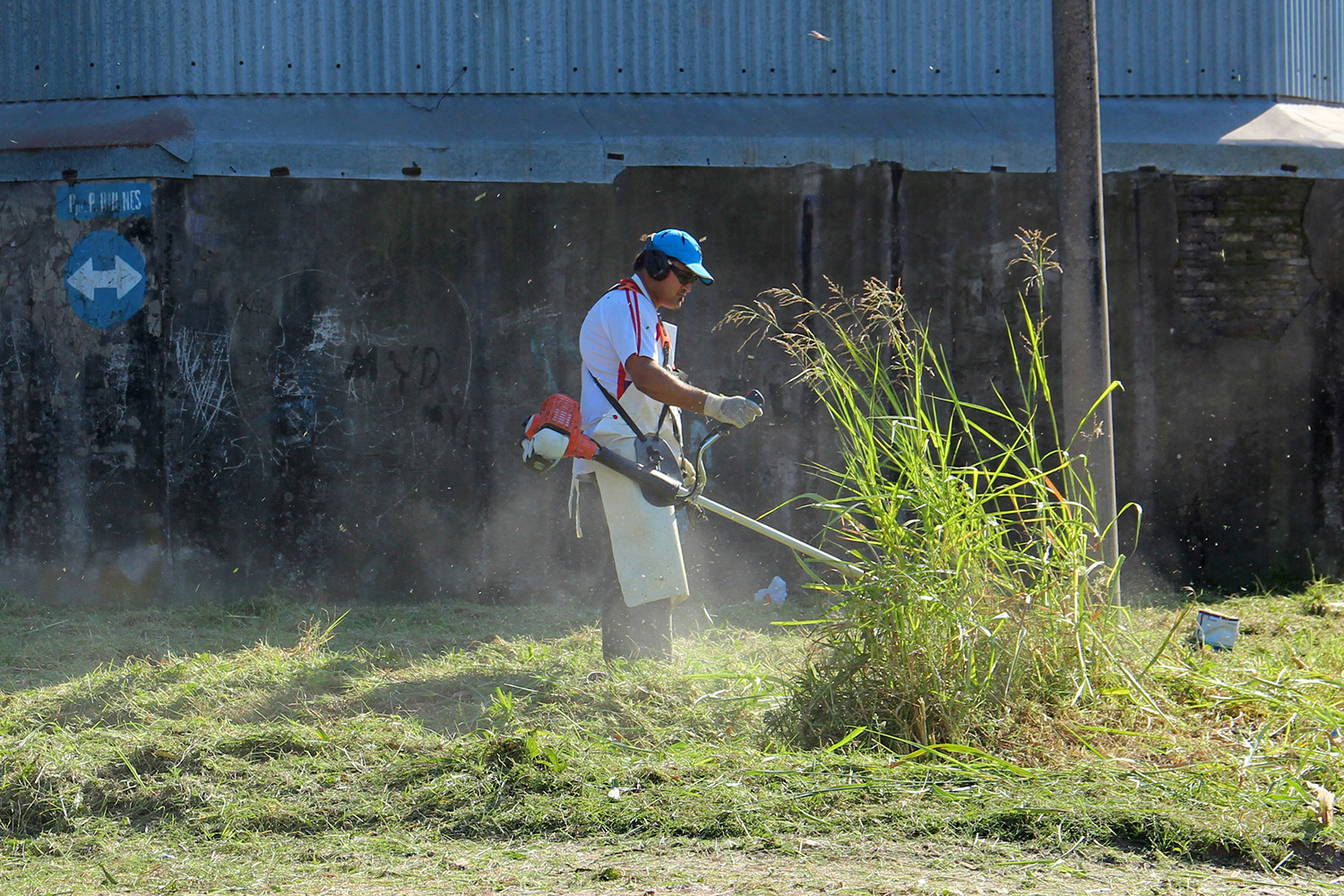 realizando desmalezamiento, limpieza de las calles con pala, zanjeo –en las