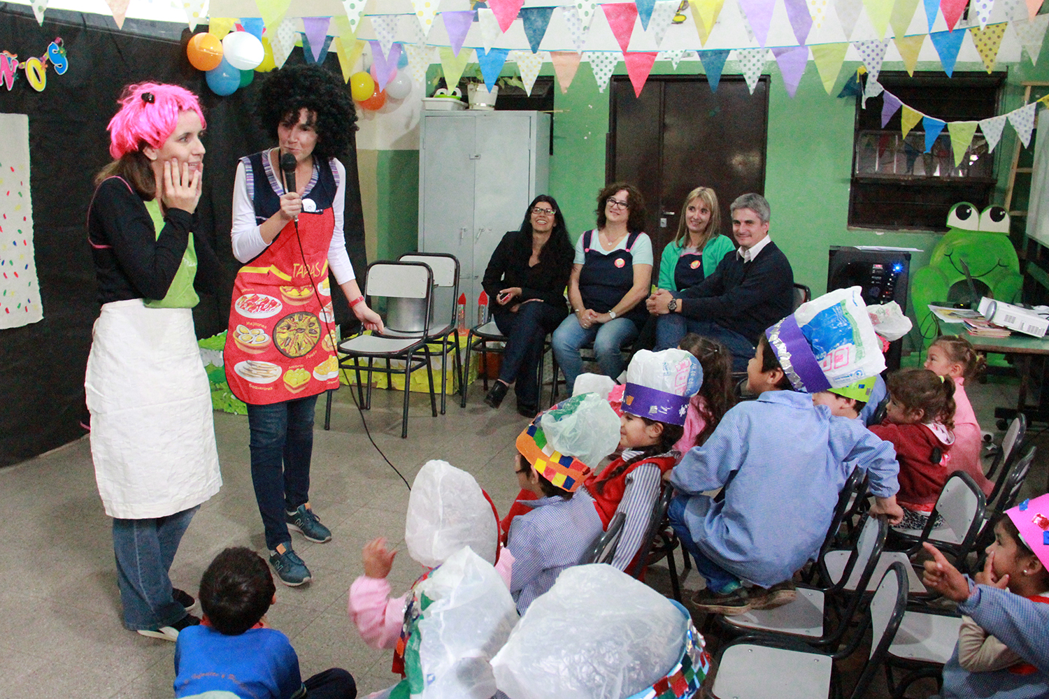 la coordinadora del Centro Infantil El Tríangulo, Elsa Maciel, los alumnos de