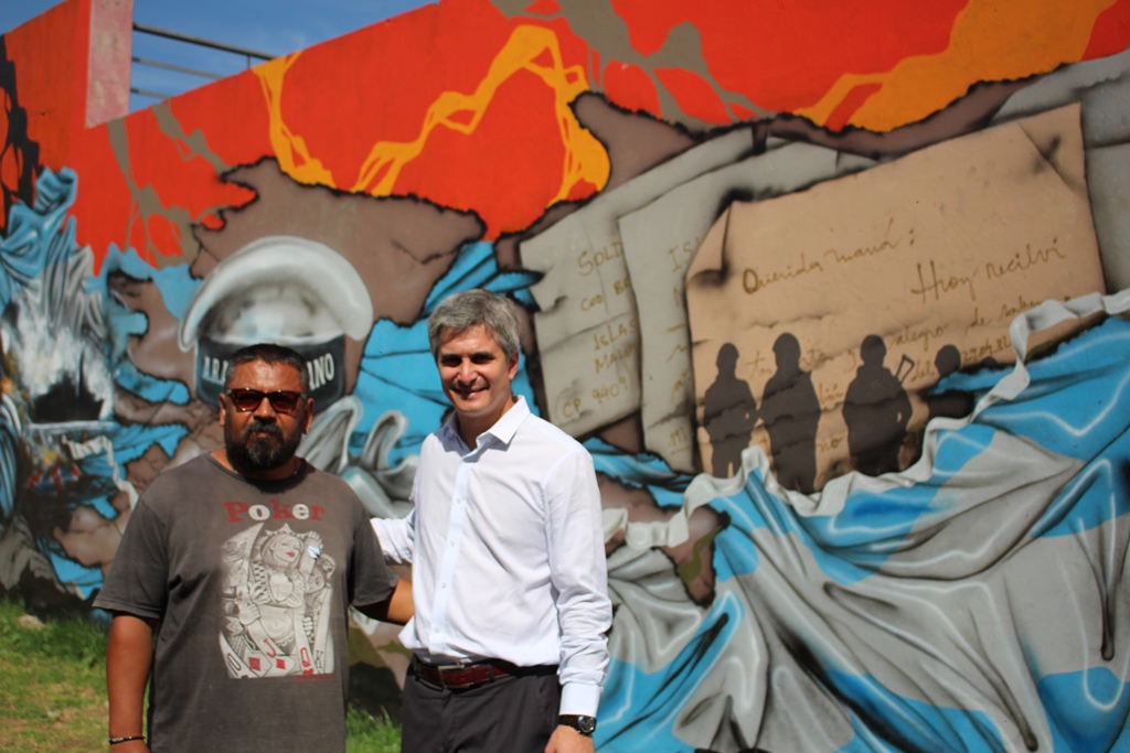 El secretario de Gobierno, Esteban Lenci, visitó la Plaza “Héroes de Malvinas”, cuyo mural fue restaurado por el artista local Rubén Pérez Barrios. Dicho mural, será reinaugurado el próximo lunes 3 de abril en el marco del día del Veterano y los Caídos de Malvinas.